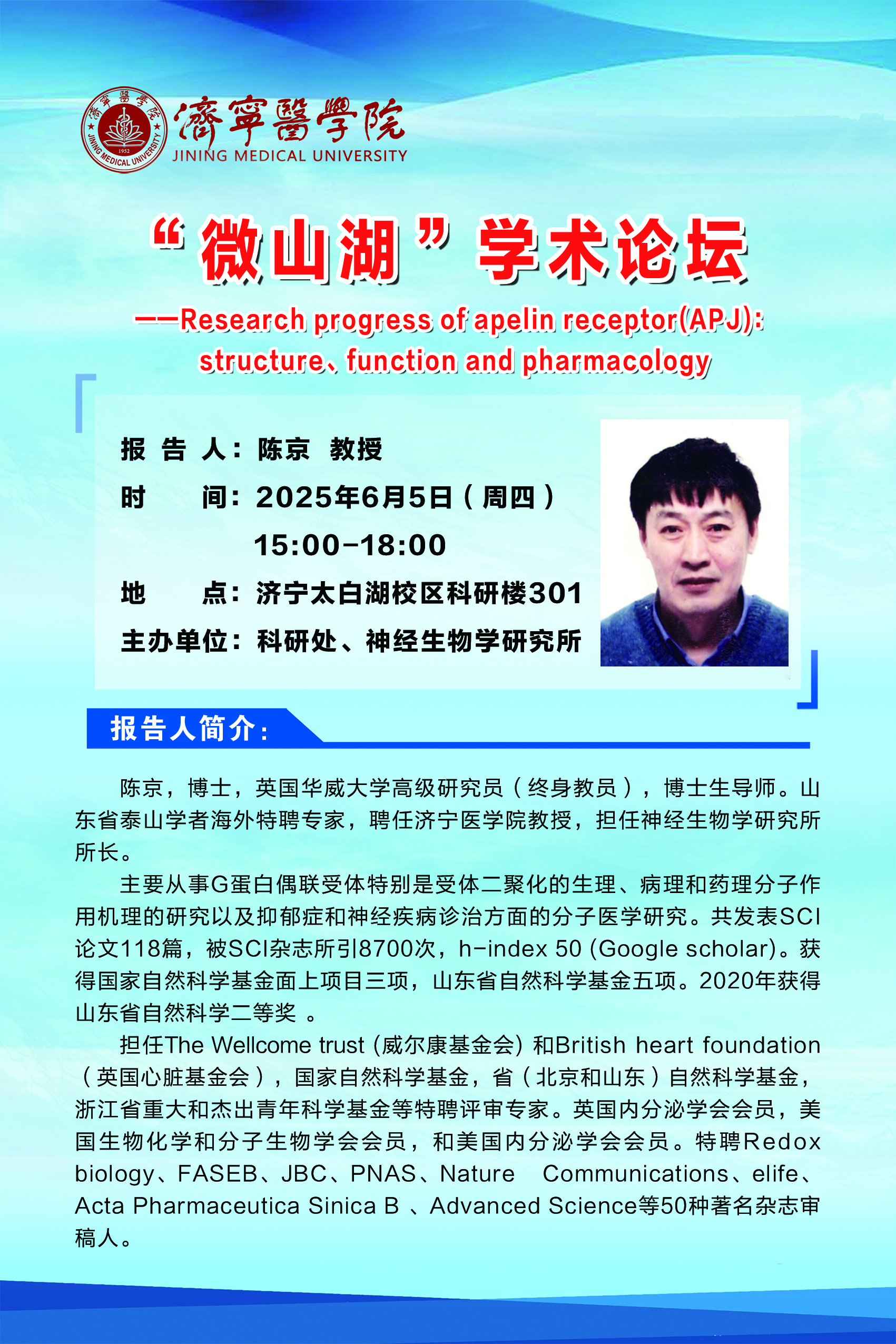 “微山湖”学术论坛——Research progress of apelin receptor(APJ):structure、 function and pharmacology