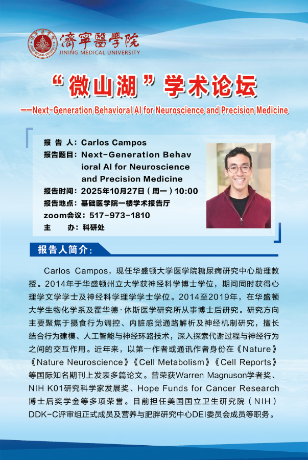 “微山湖”学术论坛——Next-Generation Behavioral AI for Neuroscience and Precision Medicine
