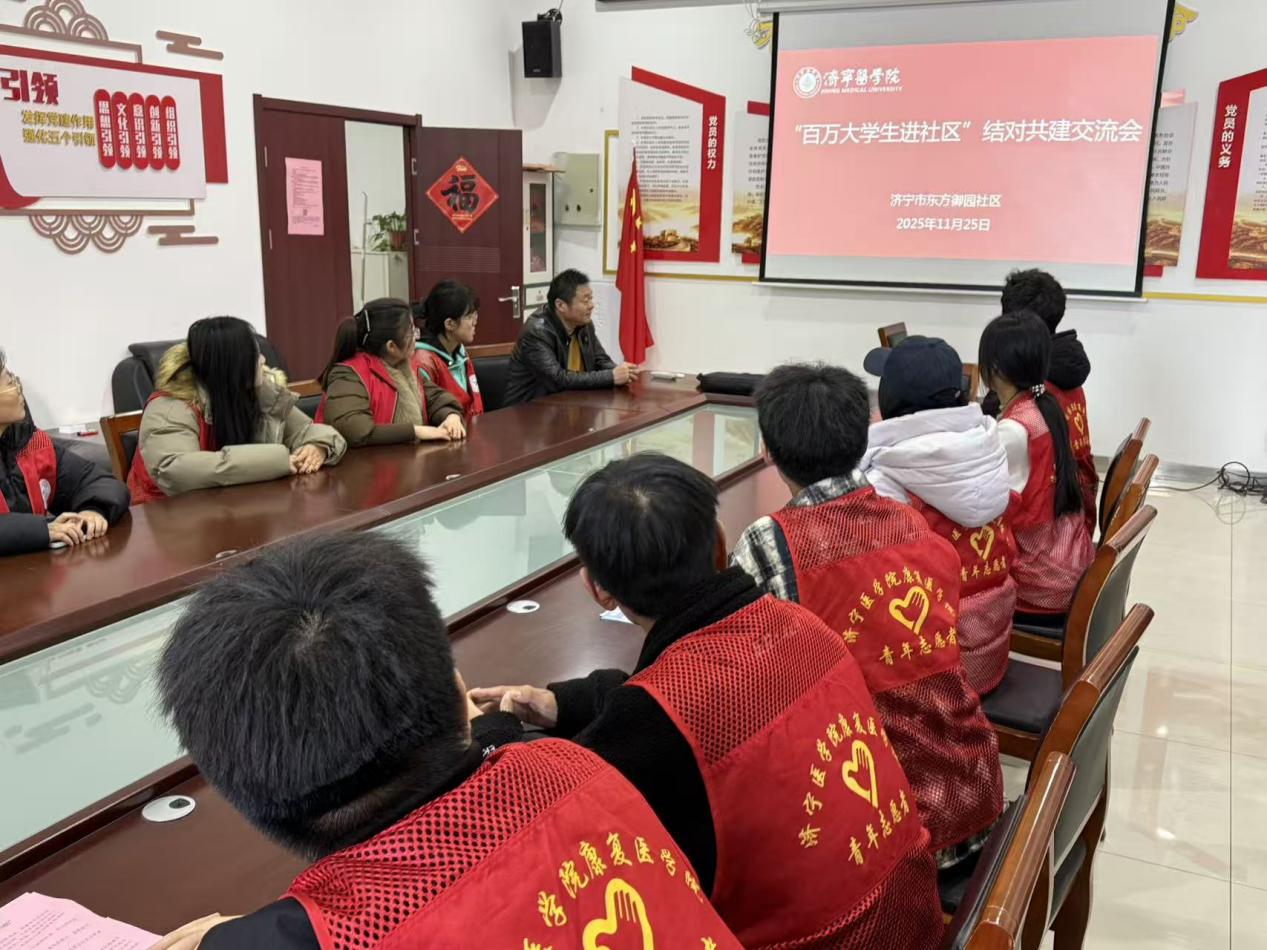 行动对接济宁市东方御园社区等基层单位,构建党建带团建结对机制与“双导师”指导体系,推动学院团组织与街道、社区党组织建立固定结对关系,形成团支部与基层单位“一对一”“一对多”长期合作模式。依托结对机制,双方共推常态化志愿服务项目,搭建校地联动、定期反馈、共育人才的长效平台,切实推动“百万大学生进社区”结对共建工作的落地见效。